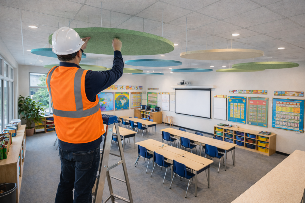 - Reverberation time (RT60) improved by 35–50%, resulting in clearer communication.